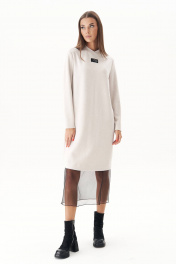 Забудьте о том, что трикотажное платье - это скучный аутфит. Декорированное отдельными акцентными элементами, оно становится дерзким и соблазнительным. Силуэт свободный, слегка упрямленный, покрой втачной, воротник-стойка. По центру переда - нашивка, по низу платья - акцентная деталь из контрастной органзы. Длина платья около 125 см. Длина рукава около 62 см.