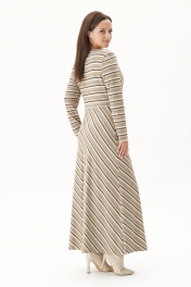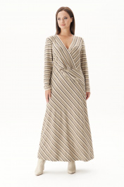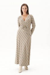 Платье в полоску с запахом и диагональной юбкой Fantazia Mod 4890 беж