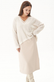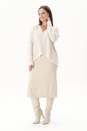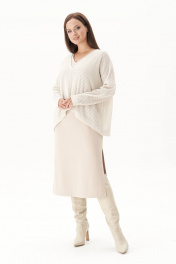 Тренд на готовый костюм с платьем - идеальное решение для тех, кто не хочет отказываться от мягкости и уюта трикотажного полотна, а также сохраняет своё время. Такой комплект создаёт максимально тёплый, элегантный и одновременно стильный образ. В нем можно пойти как на праздник так и красиво и элегантно выйти в город или сходить на работу. Платье без рукава с треугольным вырезом горловины. Полочка с нагрудными вытачками. Спинка с центральным швом, талиевыми вытачками и потайной молнией. Джемпер свободного силуэта, из трикотажной фактурной сетки с металлическим напылением. Покрой свободный с заниженной линией плеча.