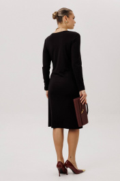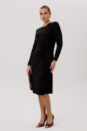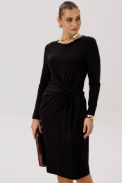 Драпировка - это ключевой элемент платья сезона 2025 г. Этот приём позволяет создать мягкий, женственный силуэт, при этом придаёт образу динамику. Расположенная в области талии она эффектно подчёркивает фигуру. Платье полуприлегающего силуэта, втачного покроя с круглым вырезом горловины и длинным рукавом. Комфортное вискозное полотно, средняя длина. Полочка с центральным швом и ассиметричным поясом-завязкой, образующим драпировку на правой половине. Рукав одношовный. Длина платья около 107 см. Длина рукава около 62 см.