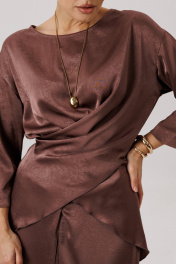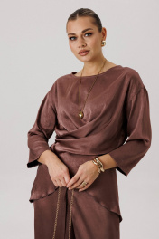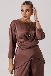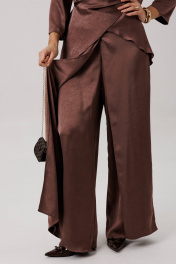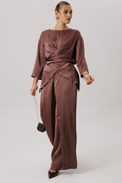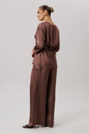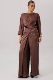 Демисезонные коричневые брюки палаццо с блузой из атласа Fantazia Mod 4993/1