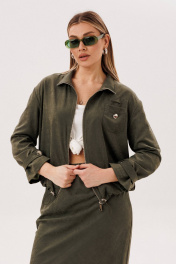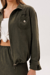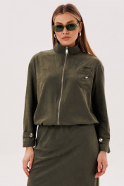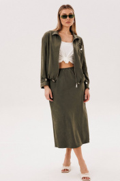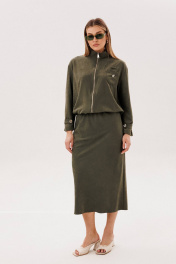 Костюм куртка и юбка на каждый день из бархатистого полотна Fantazia Mod 5079 хаки