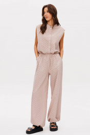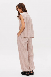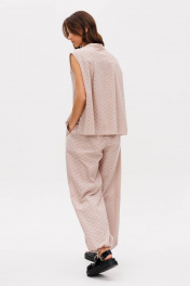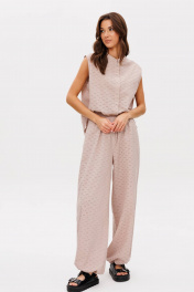 Нежный костюм из хлопкового шитья в мягком бежевом оттенке. Идеальный вариант для ваших красивых каникул. Шитье вернулось к нам в новом прочтении, таким оно еще никогда не было. Платье из шитья довольно распространенная история, а вот брючный комплект-это что-то совсем новое! Супер трендовые брюки-алладины и рубашка без рукавов. Такой комплект позволяет выделиться из толпы, но делает это ненавязчиво, не бросается в глаза, но при этом делает ваш образ запоминающимся. Футболка свободного силуэта, без рукава, с центральной застежкой и воротником-стойкой. Спинка с отрезной кокеткой и мягкими складками. Брюки свободные, на эластичном поясе с дополнительной фиксацией эластичным шнуром, боковыми карманами и подтягивающимся низом. Длина рубашки около 72 см. длина брюк около 105 см.