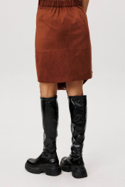 Замша уже несколько сезонов подряд удерживает статус одного из главных трендов. Для тех кто следит за модными новостями, это неудивительно: эта благородная фактура стала основой большинства модных дизайнерских коллекций. Эффектная, она органично вписывается в самые разные образы. Образ, который говорит сам за себя, смелый и дерзкий, и в то же время очень комфортный. Рубашка из замши-нестандартная, но стильная альтернатива куртке, но на более теплую погоду. Свободный, расслабленный силуэт, рубашечный покрой, центральная застежка на кнопки. Полочка с горизонтальным членением ниже линии талии и карманом в шве. Спинка с отрезной кокеткой и мягкими складками. Рукав с локтевым швом, разрезом в нем, мягкой складкой и притачной манжетой по низу. Низ изделия-фигурный. Воротник-классический рубашечный. Юбка из замши-это изюминка осеннего гардероба, позволяющая создавать любые образы, воплощая ваши самые смелые идеи. Юбка на притачном поясе, эластичном в области спинки, силуэт слегка А-образный. Переднее полотнище со швом по центру и горизонтальным членением, заднее полотнище с талиевыми вытачками, центральным швом и горизонтальным членением. Застежка в боковом шве на потайную молнию. Юбка на эластичной подкладке. Длина рубашки около 75 см. Длина рукава с плечом около 74 см. Длина юбки около 48 см. Пояс в комплект не входит
