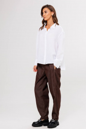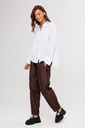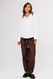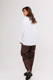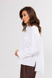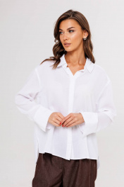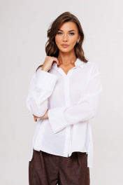 Белая рубашка-одна из ключевых позиций базового гардероба. Она легко встраивается в любой casual-комплект, ее используют, когда нужен официальный образ, а еще она выручает тех, кто много экспериментирует с трендами: уравновешивает смелые идеи в стайлинге. Свободный силуэт, рубашечный покрой, центральная потайная застежка на петли и пуговицы, воротник рубашечный с отрезной стойкой, рукав рубашечный с отрезной манжетой и разрезом в области локтевого шва. Спинка с отрезной кокеткой и двумя мягкими складками. Длина рубашки около 67 см. Длина рукава с плечом около 76 см.