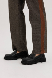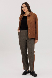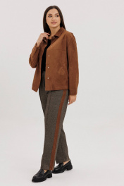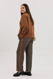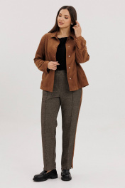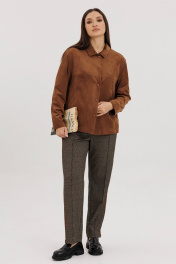 Стильный женский брючный костюм в стиле смарт-кэжуал сочетает комфорт и элегантность. Рубашка выполнена из замшевой ткани, брюки из трикотажа с декоративными замшевыми вставками. Идеальный выбор для офиса, деловых встреч и повседневных образов. Рубашка: Свободный прямой силуэт, комфортная посадка. Материал под замшу в насыщенном коричневом оттенке. Классический отложной воротник. Застежка на кнопки. Длина до линии бедра. Длинные прямые рукава. Практичные боковые карманы. Брюки: Прямого кроя, со стрелками. Боковые замшевые вставки в цвет жакета. Средняя посадка, аккуратный пояс без петель. Скрытая застежка на молнию и крючок. Длина до щиколотки. Наш костюм легко комбинируется с базовыми футболками, блузами и обувью. Удобный крой – подходит для активного дня. Контраст фактур и оттенков делает костюм современным и выразительным. Подходит для офиса, прогулок и неформальных встреч. Уход: Ручная или деликатная стирка при 30°C. Не отбеливать. Гладить при низкой температуре.