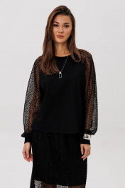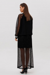 Элегантный юбочный комплект, созданный для тех, кто ценит сочетание комфорта и эффектного стиля. Верх выполнен из мягкого, комфортного вискозного полотна с нейлоном, приятного к телу и отлично удерживающего форму. Лёгкая воздушность образу придают полупрозрачные мерцающие рукава, выполненные из сетки с вкраплением микропайетки — они создают утончённую игру света при движении. Юбка макси гармонично поддерживает дизайн: плотная внутренняя часть обеспечивает комфорт и уверенность, а длинная прозрачная нижняя вставка из мерцающей сетки добавляет загадочности и женственности. Комплект смотрится нарядно, но остаётся практичным — идеален как для вечерних выходов, так и для особых событий, где хочется выглядеть эффектно, но без излишнего пафоса. Стильное сочетание фактур делает комплект настоящей находкой для создания элегантного, праздничного и современного образа.
