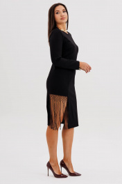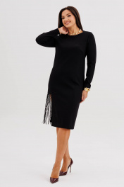 Элегантное платье из высококачественного вискозного трикотажа с добавлением нейлона — воплощение утончённого стиля и современного комфорта. Втачной крой мягко подчёркивает фигуру, а лаконичный вырез «лодочка» добавляет образу изысканности. Главный акцент — асимметричный разрез, декорированный сеткой с бахромой ручной работы, придаёт модели индивидуальность и лёгкий артистичный характер. Идеальный выбор для вечернего выхода или особого случая, когда хочется выглядеть стильно, сохраняя комфорт и уверенность.
