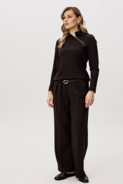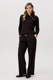 Элегантный и универсальный комплект, идеально подходящий для повседневного и офисного гардероба. Трикотажный лонгслив прилегающего силуэта подчёркивает фигуру и обеспечивает комфорт в течение всего дня. Акцентная застёжка-молния у горловины добавляет образу современный характер и позволяет варьировать степень открытости. Брюки прямого кроя с классической посадкой визуально вытягивают силуэт и создают аккуратный, собранный образ. Модель дополнена функциональными карманами и лаконичным поясом, что делает комплект практичным и удобным. РЕМЕНЬ В КОМПЛЕКТ НЕ ВХОДИТ! Комплект легко стилизуется как с обувью на плоском ходу, так и с каблуками, подходит для работы, встреч и повседневных выходов.