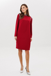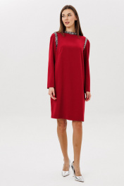 Удобство и стиль-главная идея этого платья. Кажущаяся простота-завораживает, мерцающая пайетка-приковывает взор, от вас невозможно оторвать взгляд. Свободный упрямленный силуэт, покрой-полуреглан, воротник-стойка, застежка по центру спинки на потайную молнию. По линиям пройм на полочке и спинке, стойка из отделочного полотна в пайетку. Полочка с нагрудной вытачкой. Длина платья около 100 см. Длина рукава около 62 см.