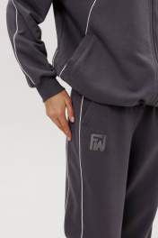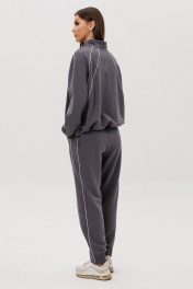 Современный костюм в стиле спорт-кэжуал — идеальный баланс комфорта и актуального дизайна. Модель выполнена из мягкого трикотажного полотна с добавлением хлопка, обеспечивающего приятные тактильные ощущения и свободу движений. Джемпер покроя реглан с аккуратной стойкой и застёжкой-молнией украшен контрастными кантами, придающими образу динамику. Брюки со слегка зауженным силуэтом и манжетами по низу дополнены эластичным поясом для удобной посадки. Костюм легко интегрируется в повседневный гардероб — от прогулок до путешествий и отдыха в городе.