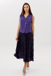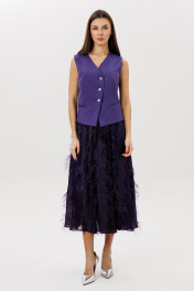 Актуальный комплект, в котором строгая геометрия жилета гармонично сочетается с романтичной женственностью многослойной юбки. Лёгкий шифон с фактурным переливом делает образ выразительным и праздничным, а продуманная посадка юбки обеспечивает красивую линию талии и динамику силуэта.
