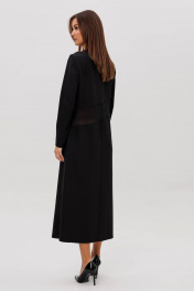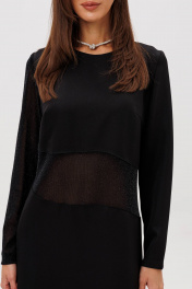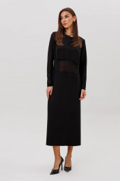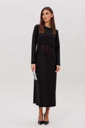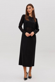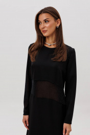 Платье полуприлегающего силуэта изящно подчёркивает фигуру и создаёт утончённый, благородный образ. Втачной крой обеспечивает идеальную посадку, а продуманная длина добавляет элегантности. Главный акцент модели — сочетание разных фактур: полупрозрачный рукав и асимметричная вставка из мерцающей сетки создают лёгкий «вуальный» эффект, добавляя образу загадочности и современного шика. Такое платье идеально подойдёт для вечерних выходов, торжеств и особых случаев, когда хочется выглядеть эффектно, сдержанно и по-настоящему стильно.