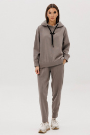 Уютный костюм из тёплого хлопчатобумажного футера с мягким начёсом «барашек» — идеальное сочетание комфорта и современного стиля. Объёмный худи с капюшоном и контрастным шнуром создаёт расслабленный силуэт, а брюки со слегка зауженным кроем и декоративными строчками добавляют образу актуальности. Материал приятен к телу, хорошо держит форму и дарит ощущение тепла даже в прохладную погоду. Этот костюм подойдёт как для прогулок и путешествий, так и для уютных домашних выходных.