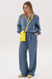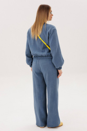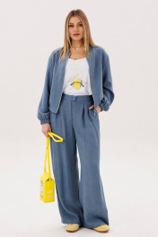 Стильный брючный комплект в благородном голубом оттенке — универсальное решение для современного гардероба. Лаконичный дизайн и свободный крой создают лёгкий, элегантный образ, который идеально подходит для повседневной жизни и городских прогулок. Комплект состоит из: Лёгкого жакета свободного кроя с мягкой линией плеч и эластичными манжетами Широких брюк с высокой посадкой и аккуратными складками спереди Жакет придаёт образу расслабленную элегантность и комфорт, а широкие брюки визуально вытягивают силуэт и обеспечивают свободу движений. Продуманный крой делает модель удобной и универсальной для разных типов фигуры. Изделие выполнено из приятного к телу материала, который хорошо держит форму, оставаясь лёгким и комфортным в течение всего дня. Преимущества модели: актуальный свободный силуэт стильные широкие брюки комфортная посадка универсальный дизайн для повседневных образов Комплект легко комбинируется с базовыми топами, футболками и различной обувью — от кроссовок до элегантных туфель. Это идеальный выбор для тех, кто ценит комфорт, современный стиль и практичность в одежде.