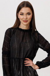 Шифон - это идеальная ткань для пошива весенних платьев. Платья, выполненные из этого материала, выглядят элегантно и игриво, особенно если это платье в романтическом стиле. Нежное и воздушное, с каскадом расширяющихся воланов с легкой сборкой, свободного силуэта. Рукав втачной из двух частей с эластичной тесьмой в верхней части и по низу. Горловина изделия с декоративной отделкой со сборкой. Длина изделия около 86 см. Длина рукава около 61 см.