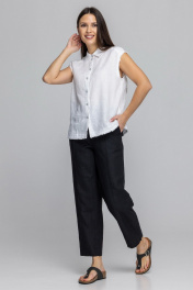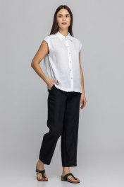 Брюки-капри со стрелками. Классического прямого кроя. Притачной пояс, сзади на резинке. Удобные наклонные карманы в боковых швах, застежка на молнию спереди. Средняя посадка. Длина брюк 7/8
