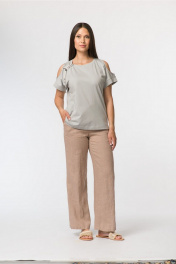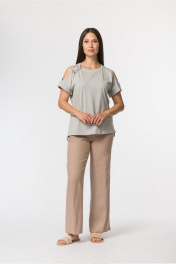 Джемпер прямой с овальными вырезами и шнурами FASHION CENTRE Х-3728 серо-голубой