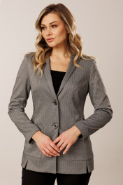 Силуэт: прямой Тип ткани: жакет- трикотаж, брюки-костюмная Вырез горловины:воротник- имитация "шальки" Длина жакета: по спинке - 72см Длина рукава: 63см, рукав втачной. Длина брюк- 97см. Дополнительное описание:комплект состоит из жакета и брюк. Жакет на подкладке, с накладными карманами и фигурными разрезами по переду. Застежка на петли и пуговицы. Спинка с центральным швом и притачными бочками. Брюки прямые, слегка зауженные книзу, с карманами. Пояс частично на резинке.