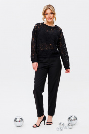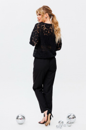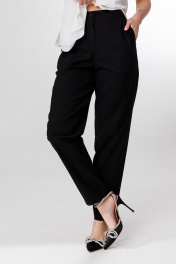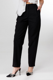 Силуэт: полуприлегающий. Брюки средней посадки, слегка зауженные книзу. Пояс частично на резинке. По переду брюк- карманы. Сзади- накладные карманы. Длина брюк: 99см, ширина брюк по низу- 17см.