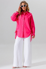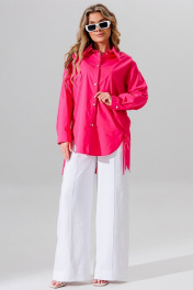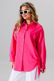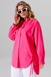 рубашка свободного силуэта с отложным воротником и шнуром Faufilure C1626 розовый