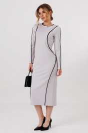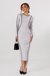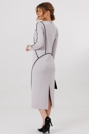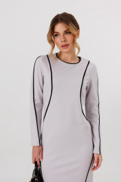Платье трикотажное, с отделкой из контрастных кантов по всей длине, рукавам и полочке. Сзади в среднем шве - потайная застежка-молния, снизу - шлица.