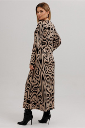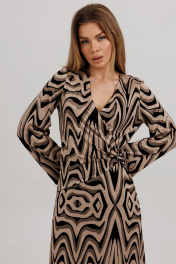 Стильное платье полуприлегающего силуэта, из комфортного трикотажа с люрексовой нитью. Верхняя часть полочки изделия на запах. Рукав втачной. Вырез горловины: фигурный.