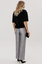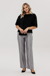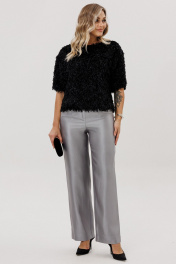 Брюки из нарядной ткани с блеском, пояс частично на резинке. Изделие с функциональными боковыми карманами.