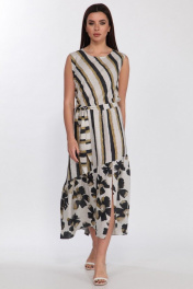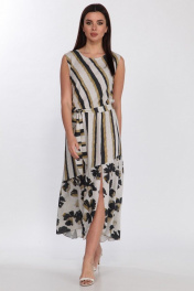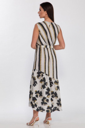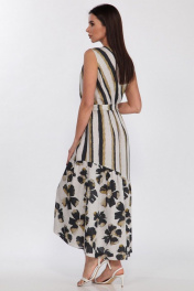Платье из вискозы с асимметричным воланом и поясом Faufilure C1186 цветы