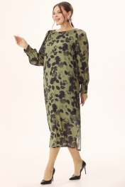 Демисезонное зеленое шифоновое платье с разрезами Faufilure C1229 зеленый