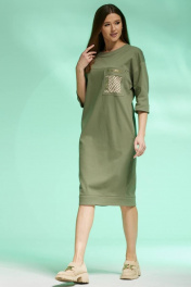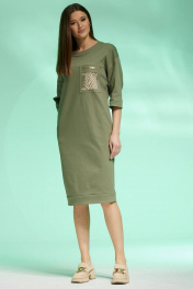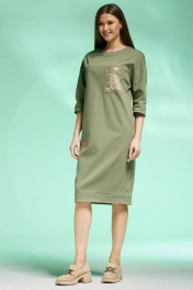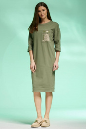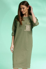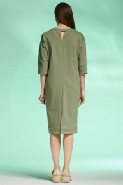 Платье полуприлегающего силуэта из джинса с карманами и разрезом Faufilure C1427 хаки
