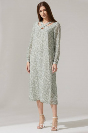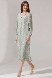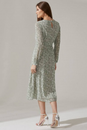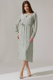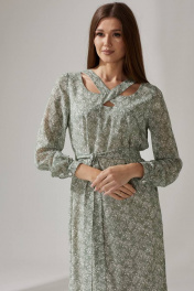 Платье из шифона с нагрудными вытачками и поясом Faufilure C1474 зеленый