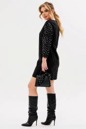 Силуэт: полуприлегающий Тип ткани: плательная Вырез горловины: округлый Длина изделия: по среднему шву спинки -92см Длина рукава:-50см,спущенная линия плеча, рукав объемный, из отделочной ткани, собранный на Дополнительное описание: спинка с вытачками и застежкой- молнией в среднем шве. Платье на подкладке.