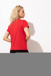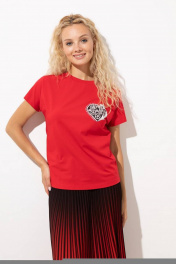 Хлопковый женский джемпер прямого силуэта с интересной печатью в виде сердца.У модели красивый фигурный вырез горловины - лодочка., обработанная из основной ткани,шириной 2,5 см.Рукав цельнокройный,короткий .Джемпер будет эффектно смотреться как с юбками, так и с джинсами, брюками.Джемпер-блуза хорошо сидит на женщинах и девушках с любым типом фигуры и легко сочетается с любыми вещами из гардероба - подойдет как к деловому стилю, для офиса так и расслабленному спортивному комплекту, впишется в casual образ.