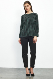 Женская блузка полуприлегающего силуэта с фигурным низом. Длина чуть ниже бедер. Рукав с возможностью регулировки на пату, на которой настрочена декоративная тесьма с петлей и пуговицей .Длина рукава 7/8.Блузка с принтом будет незаменимым элементом вашего базового гардероба.