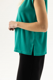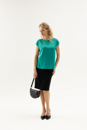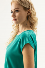 Базовая блузка никогда не выйдет из моды - простота кроя и четкие линии делают ее универсальной. Красивая округлая горловина – лодочка и спущенная линия плеча придадут образу мягкость и элегантность. Она невероятно приятна к телу, пропускает воздух и не мнется. Струящаяся ткань красиво драпируется и великолепно ложится на любой тип фигуры. Сочетание свободного полуприлегающего силуэта блузки и гладкая атласная текстура дают ощущение комфорта и женственности.Блуза отлично смотрится с однотонными вещами: с брюками палаццо, юбками в пол, классическими юбками, джинсами и может использоваться для создания вечернего или торжественного образа.