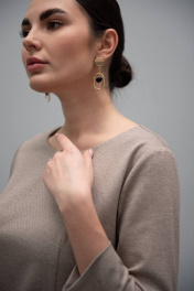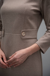 Теплое платье полуприлегающего А-силуэта длиной выше колена на 5 см. Платье с фигурным вырезом горловины и прямыми рукавами длиной 7/8. Сзади модель застегивается на молнию. На талии есть вытачки, и детали с пуговицами, которые позволяют подчеркнуть женский силуэт.Платье приятное к телу и на ощупь, в нем не жарко, не мнется, хорошо носится, легко стирается, быстро сохнет, не требует специального ухода.