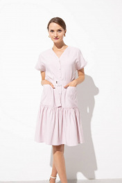 Свободное платье с воланами и поясом - привлекательный вариант повседневного платья на каждый день в офис или институт. Лаконичность и стиль сливаются в этом модном платье с воланом внизу. Спереди у модели имеются накладные карманы и нагрудные вытачки, благодаря которым модель хорошо садится на фигуру. У платья короткие рукава 16 см со спущенной линией плеча. Горловина имеет V- образный вырез , акантованный тканью. Платье приятное к телу и на ощупь, в нем не жарко, не мнется, хорошо носится, легко стирается, быстро сохнет, не требует специального ухода.