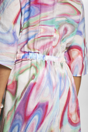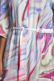 Платье свободного кроя расширенное к низу, длина миди. Имеет V-образный вырез горловины, на пуговицах. Модель изготовлена на 81% из модала и на 19% из полиэстера. Оно прекрасно дышит и не нагревается в жару. В таком платье Вы всегда будете чувствовать свежесть. Красивая женственная расцветка подойдет как блондинкам, так и брюнеткам. Платье идеально подойдет для отпуска на море.