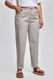 Светлые брюки − незаменимая вещь в летнем гардеробе. Можно сочетать практически с любыми оттенками верхнего ассортимента и с жилетом из такой же ткани. Зауженный книзу на притачном поясе с резинкой, длина 9/10. Застёжка на одну петлю и пуговицу и молнию. Наклонные карманы спереди . По спинке накладные карманы с фигурными строчками, кокетка. Низ в подгибку с закрытым срезом и отделочной строчкой. Брюки приятные к телу и на ощупь, в них не жарко, они не мнутся, хорошо носятся, не требуется бережная стирка.Идеальны для лука в стиле элегантной повседневности.