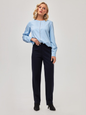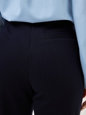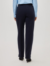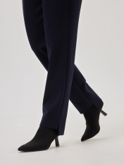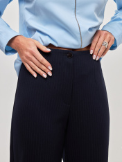 Элегантные классические женские брюки, выполненные преимущественно из дышащей импортной качественной вискозы, что является особым преимуществом при выборе данной модели.Выполнены в темно-синих оттенках, в качестве принта, добавлена ненавязчивая лаконичная светлая полоска, классический принт, который никогда не выходит из моды.Благодаря силуэту этой модели брюк, зауженному книзу, не создают лишний ненужный объем. Декорированы застежкой молнией и ассиметричны внизу. Благодаря этой детали и конструкции данной модели, зрительно вытягивают силуэт, подчеркивают достоинства и скрывают то, что необходимо скрыть. По линии пояса расположены вытачки, имеющие разную длину, это преимущество данной модели, т.к. оно позволяет визуально уменьшить обхват бедер.Все эти составляющие позволяют добавлять разные цветовые решения, создавать монохромные образы, либо создавать цветовой диссонанс.. Подходят для создания более деловых образов и для повседневной жизни.