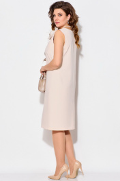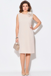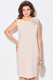 Платье "Вецена" на подкладке из блестящей трикотажной ткани. Платье прямого силуэта с выточкой на груди, по спинке потайная молния и шлица. Горловина и проймы обтачены подкладкой. Низ платья обработан потайным швом в подгибку. Платье украшено цветком ручной работы.