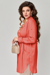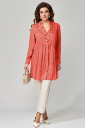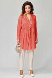 КОМПЛЕКТ ДВОЙКА "Медея". Туника женская, прямого силуэта. Выполнена из хлопковой ткани. Рукав втачной, длинный, по низу притачная манжета с застежкой на пуговицы. Длина рукава регулируется патой. Фигурный вырез горловины, оформленный отрезными планками. Застежка на пуговицах. Воротник стойка. По переду выполнены фигурные карманы с небольшой сборкой по верхнему краю. По линии талии подрез с небольшой сборкой. На спине изделия прямая кокетка, посередине бактовая складка. Низ изделия фигурный, по боковым швам выполнены разрезы. Джинсы - брюки, зауженные к низу, с застежкой на молнию и пуговицы, в боковом шве - карман, по спинке пояса - резинка. Брюки со стандартной посадкой (средней).