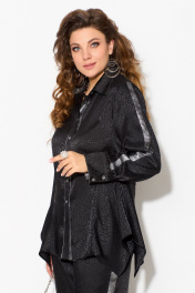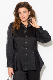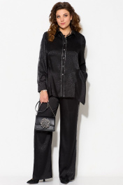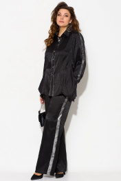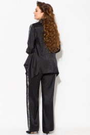Необычный красивый комплект "Русалия" состоит из нарядной блузки и брюк. Блузка без подкладки, ткань мягкая, приятная к телу, присутствует леопардовый сатиновый рисунок. Это стильная блузка полуприлегающего силуэта, эффектом блузки является отделка из сатиновой серебристой ткани. Застежка в блузке однобортная: одна планка из отделочной сатиновой серебристой ткани, вторая планка из основной леопардовой ткани, в шов вставлен кант из отделочной ткани. Воротник рубашечного типа со стойкой, по краю воротника кант. По полочке блузки рельефы, по бокам подрезы, расклешенные к низу. По спинке блузки - отрезная кокетка и рельефы. Рукав втачной с лампасом из отделочной ткани. По низу рукава - манжет с застежкой на две пуговицы. Низ изделия обработан швом в подгибку с закрытым срезом. Брюки выполнены из текстильной леопардовой сатиновой ткани. Брюки прямые на резинке. В боковых швах брюки карманы, в брюках вставлены лампасы из отделочной ткани. Низ брюк обаботаны швом в подгибку швом с закрытым срезом. Стильный необыкновенный комплект "Русалия" подчеркнем вашу индивидуальность и стильность. Этот костюм для модных женщин!
