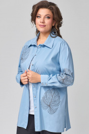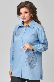 Голубая демисезонная рубашка из хлопка с воротником стойка Fita 20313
