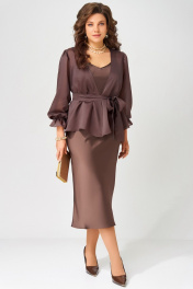Нарядный комплект ""Джелика"" состоит из нарядного сатинового платья и накидки. Накидка выполнена из текстильной ткани вуаль ""Аурора"". Накидка свободного покроя, без застежки, край борта обработан бейкой, рукава втачные одношовные, низ рукава присобран на венгерку, по окату рукава легкая сборка. Низ изделия и низ рукавов обметан улиткой и застрочен на 0,2 мм. В комплект ""Джелика"" входит пояс. Платье на бретелях выполнено из сатиновой ткани ""Изабелла"". Бретели регулирыемые. Платье без подкладки полуприлегающего силуэта, выкроено по косой. По полочке платья нагрудная выточка. Верх платья и бретели обработаны окантовкой, низ платья обработан улиткой и застрочен на 0,2 мм. Комплект ""Джелика"" — воплощение праздничной элегантности. Легкая накидка и изящное платье создают гармоничный дуэт, который сияет на любом торжестве. Носите вместе — для эффектного выхода, или по отдельности — чтобы каждый образ звучал по-новому.