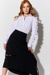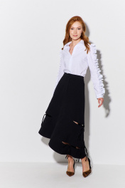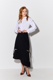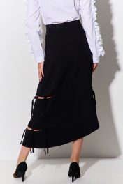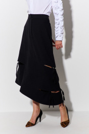 Юбка асимметричная с разрезами и поясом из костюмной ткани FLAIM 1091 черный
