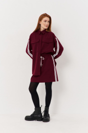 Рубашка свободного силуэта с накладными карманами. Характеристики: свободный силуэт, выполнена из костюмно-плательной ткани в цвете марсала, по полочкам накладные карманы, центральная потайная застежка на петли и пуговицы, по спинке отрезная кокетка и складка, по рукавам контрастные лампасы, низ рукава обработан манжетой на петли и пуговицы. Длина рубашки по переду 78 см, длина рукава 54 см.