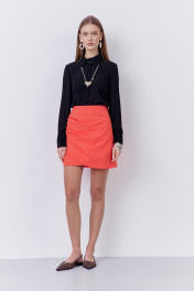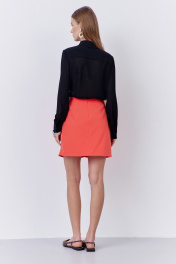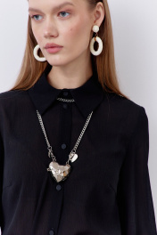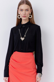 Рубашка классического кроя. Характеристики: выполнена из ткани крэш-шифон в черном цвете, центральная застежка на петли и пуговицы, низ рукава обработан манжетой на петли и пуговицы.