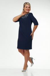 Платье полуприлегающего силуэта. Из приятного и уютного качественного трикотажа.По переду имеются рельефы и декоративная отделка у горловины. По спинке- вытачки и молния, а также небольшая шлица. Рукав втачной 3/4. Длина платья по спинке 97см (+/- 1 см).